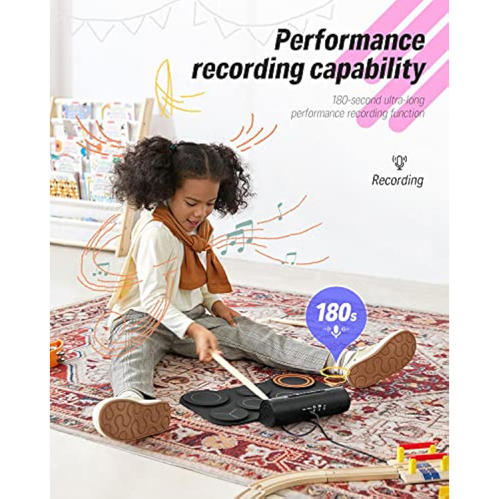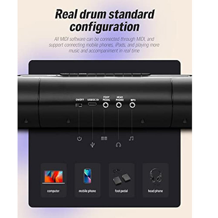 - [MIDI Connect & Gameplay] Come with standard midi out jack and USB midi out jack, you can connect the drum to computers to produce music or play games, or connect external speakers for family entertainment/birthday parties. Perfect for adults who need MIDI functionality and children for entertainment.